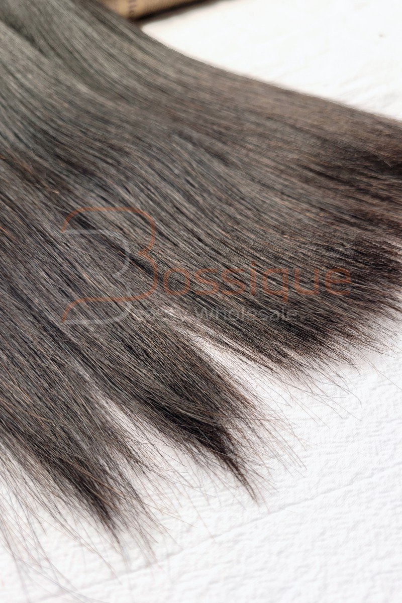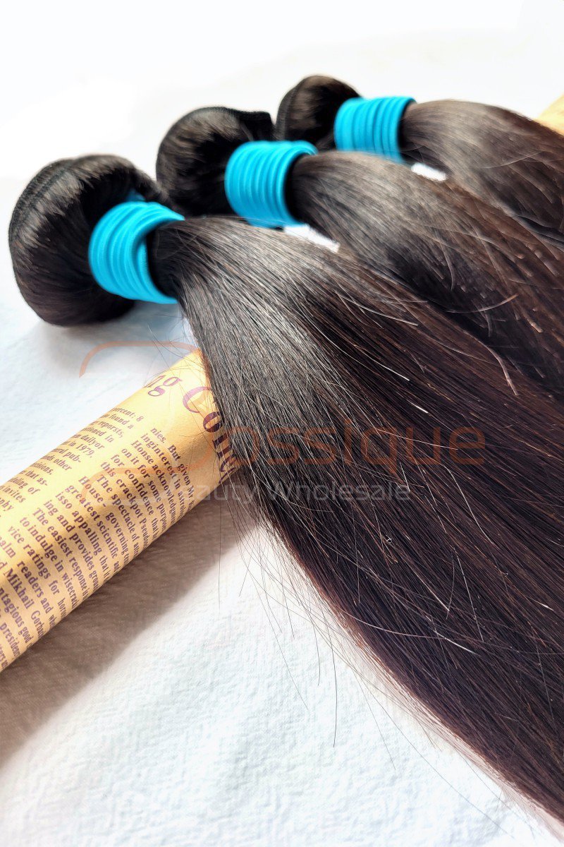 A: In China, it’s common to see bundles weighing between 80 and 95 grams. Many vendors claim that their bundles are 100 grams, but they rarely are. Remove some of the rubber bands, and you might even lose 5-10 grams of the weight. The weight of our straight bundles is 95 ± 2 grams with the rubber bands removed, and a bit over 100 grams when with rubber bands.