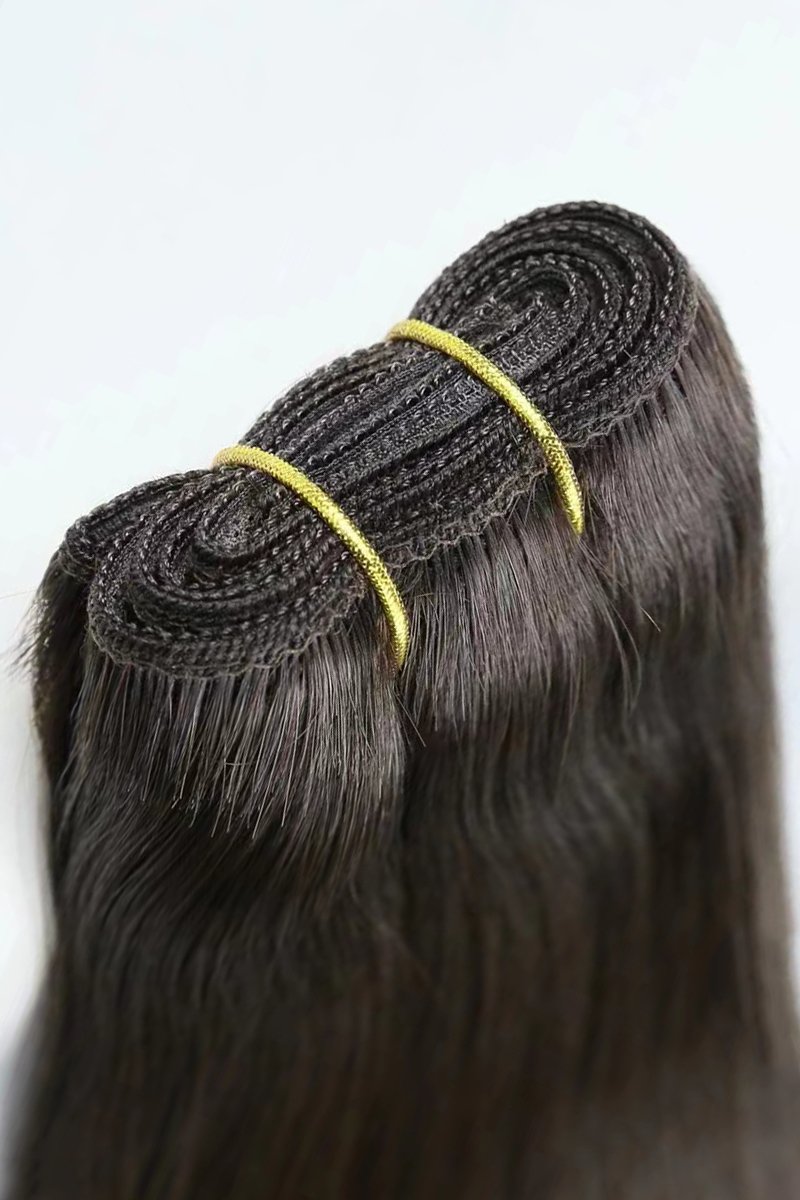 We stock our Double Drawn Machine Wefts and the associated materials at a 30% fullness level. We find that this balance between quality and affordability meets our customers’ needs. However, for those seeking higher fullness, customization is available, albeit with longer production times, higher costs, and a minimum order quantity requirement.